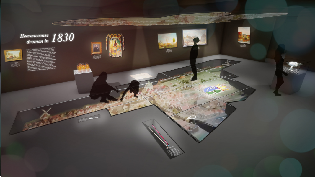 Het is 1830. Heerenveen is een deftig provinciestadje. Aan de rand de boerderijen en de molens. Een vaart door het centrum met de huizen van de notabelen. Kleine werkmanshuisjes zij aan zij. De herberg, de kruidenier en de apotheek. En maar liefst drie kerken, voor elke grietenij een. Hoe zou het zijn als je er in de avond overheen zou kunnen vliegen en door de ramen naar binnen kijkt? Zou je ze kunnen zien, al die mensen? Zijn hun dromen dezelfde als de onze? Terwijl je over de maquette loopt of kruipt openen zich de dromen van Heerenveners uit 1830. Van elk huis is bekend wie er woonde – en dat zie je op de wolken boven je. Van sommige is de droom nog te achterhalen. De bezoeker mag deze ontdekken middels allerlei speelse, evocatieve en/of emotionerende interacties en installaties: luisterverhalen, projecties, games, objectensembles en hands-on.
