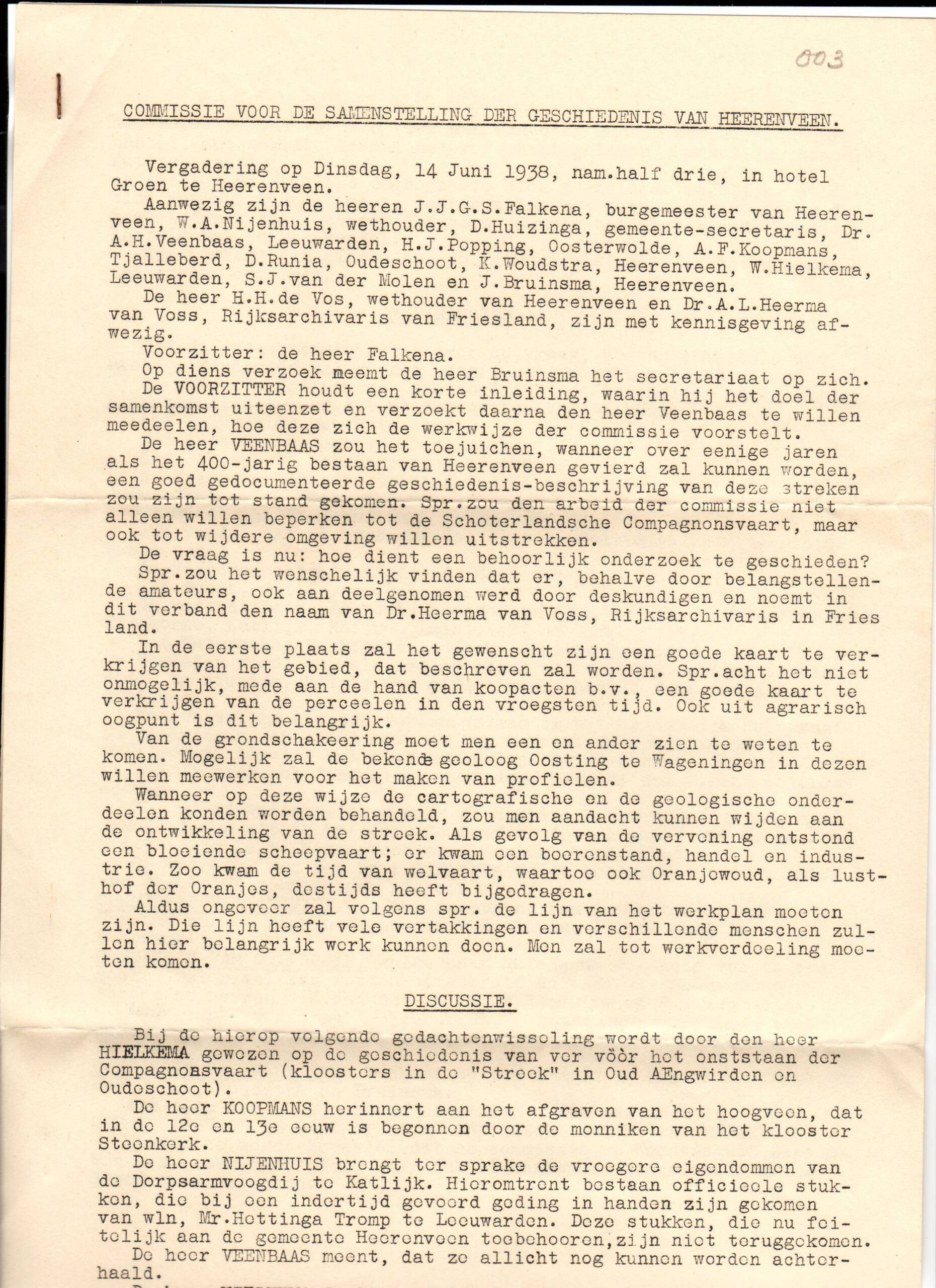 In 1938 wordt de Commissie Oudheidkamer opgericht. Een oproep in de lokale kranten om tijdelijk of definitief bronnenmateriaal en objecten af te staan voor de oudheidkamer kan rekenen op veel belangstelling en instemming. De gebrachte objecten worden bij de commissieleden op zolderkamers bewaard. De meeste voorbereidingen voor een oudheidkamerorganisatie worden door de oorlogsomstandigheden in het geheim tot stand gebracht. Vanaf 1941 mogen voorwerpen worden opgeslagen in het arrestantenlokaal van Tjalleberd. Een plek om de voorwerpen aan het publiek te tonen is er nog niet. Op 22 oktober 1942 passeert notaris J.J. van der Heij de stichtingsacte en daarmee was de Oudheidkamer een feit.